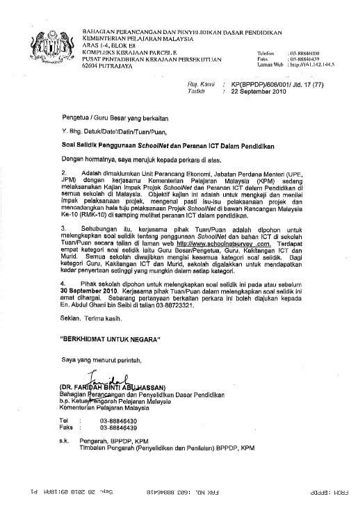 Contoh Surat Sokongan Permohonan Projek Tengok Letter Website