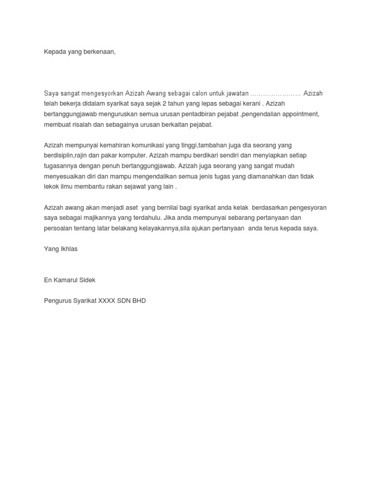 Contoh Surat Sokongan Majikan Pdf
